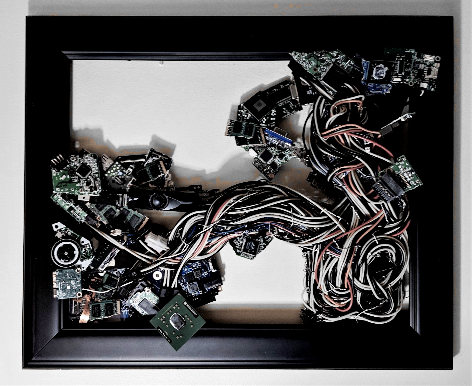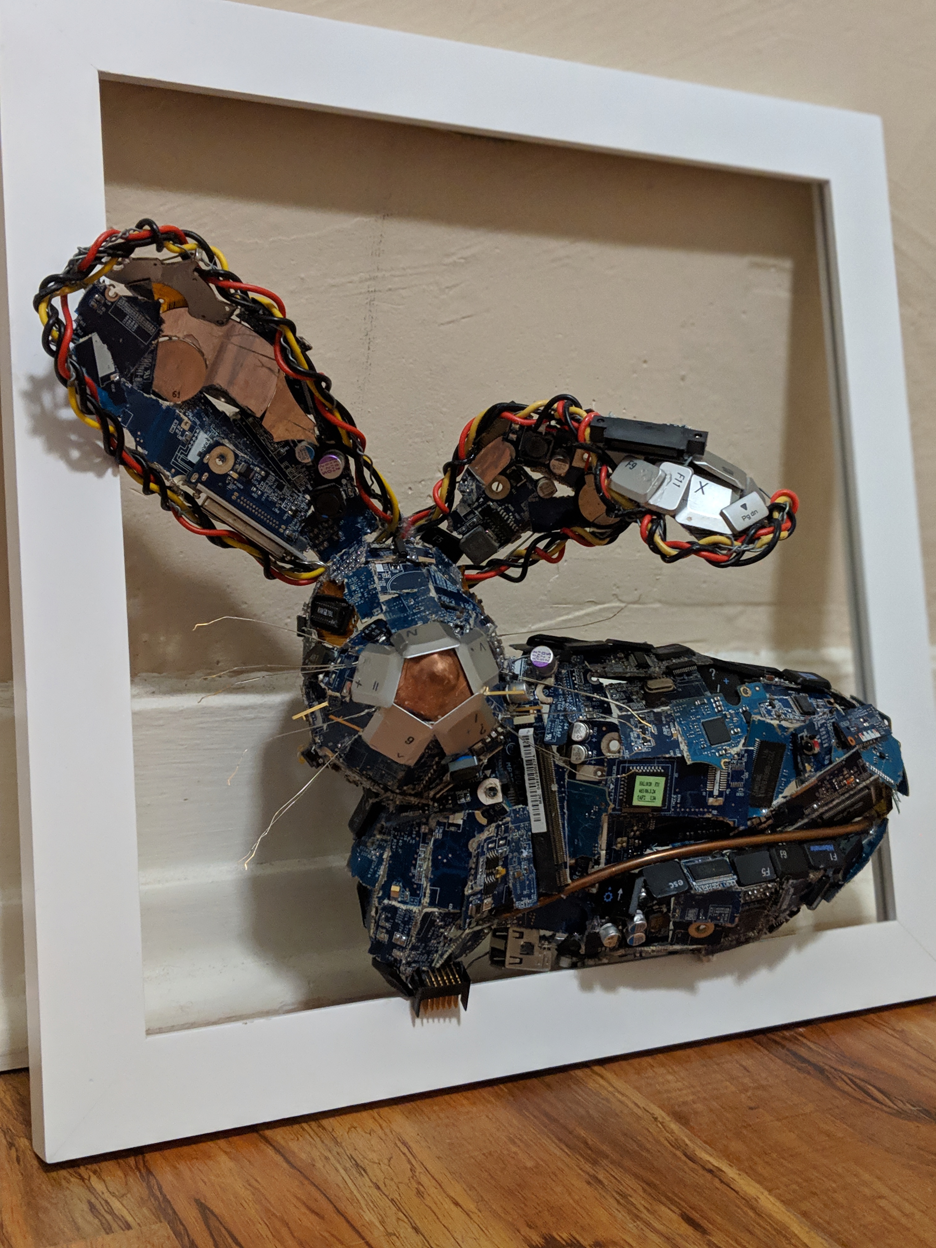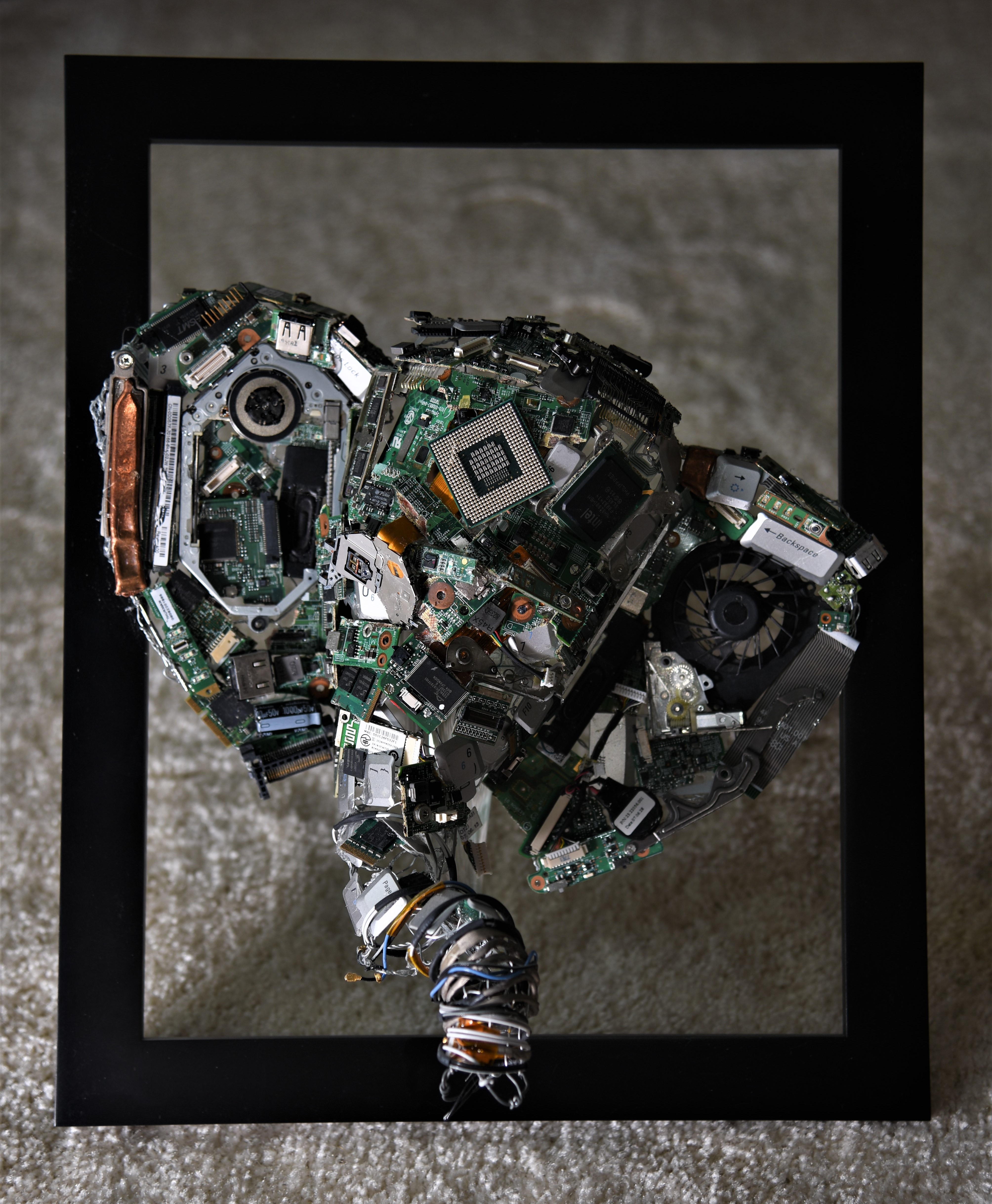 What started as an idea for my final art project has grown into my main hobby. Each piece is made specially for the recipient. So far I have only made these 3D wall hangings as gifts for my family, but want to extend the offer to each of you. Use the ORDER button at the bottom of the page to start the collaborative process. Also, if you have an old computer you want to donate, I would love to recycle it into an art piece for you, a loved one, or a lucky stranger. Use the DONATE button at the bottom of the page to contact me for more information about donating your old computer.